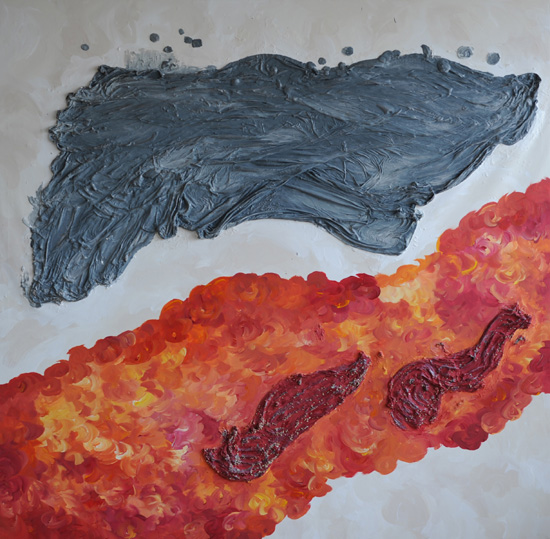 Medidas: 190 x 190 cm. Acrilico y tela y escayola sobre lienzo. 2007.