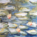 Tranquilo y apacible estanque lleno de nenufares inspirado en los que pinto Monet en su ultima epoca.