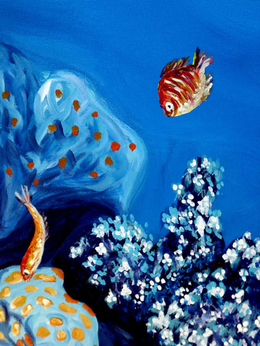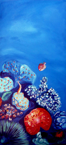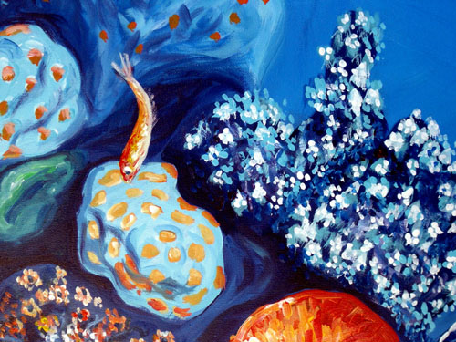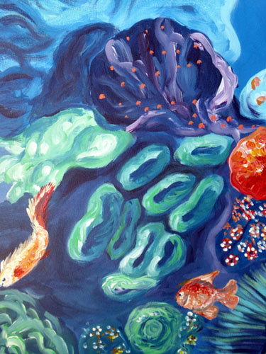 Fondo del mar tomado con luces ultravioletas y plasmado en el lienzo con todo su colorido.